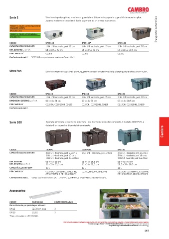 Confezione da cad: 1 *Senza usare le bacinelle GN. 100MPC, 100MPCHL e UPC100 senza barra divisoria.