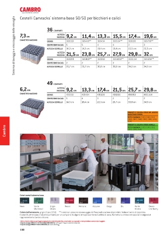 I colori illustrati sono indicativi pertanto per un campione rivolgersi al rappresentante Cambro di zona. Per tutte le ordinazioni speciali rivolgersi al