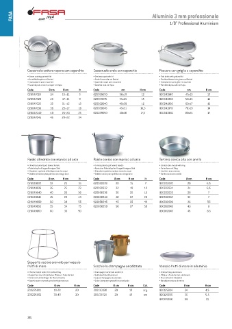 • Cacerola para coccion a vapor con tapa • Cacerola oval con tapa • Hervidor de pescado con tapa