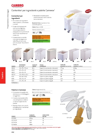 Preparazione e stoccaggio Contenitori per ingredienti e palette Camwear ®