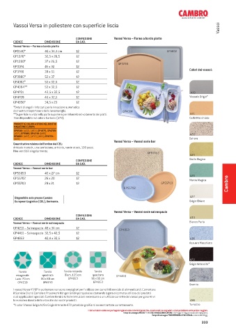 o ad applicazioni speciali. Cambro fornirà tutte le istruzioni necessarie a un utilizzo corretto dei vassoi per garantirvi