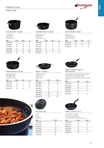 • Cacerola baja 1 mango • Paellera 2 asas • Sartén recta, alta conductividad, espesor 5 mm, fondo rectificado.