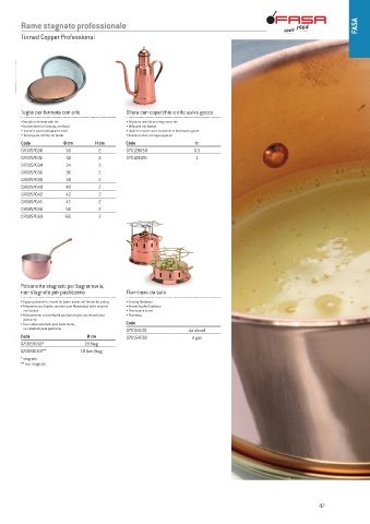 • Polsonetto en cuivre étamé pou bain-marie, non-étamé pour • Flambeau